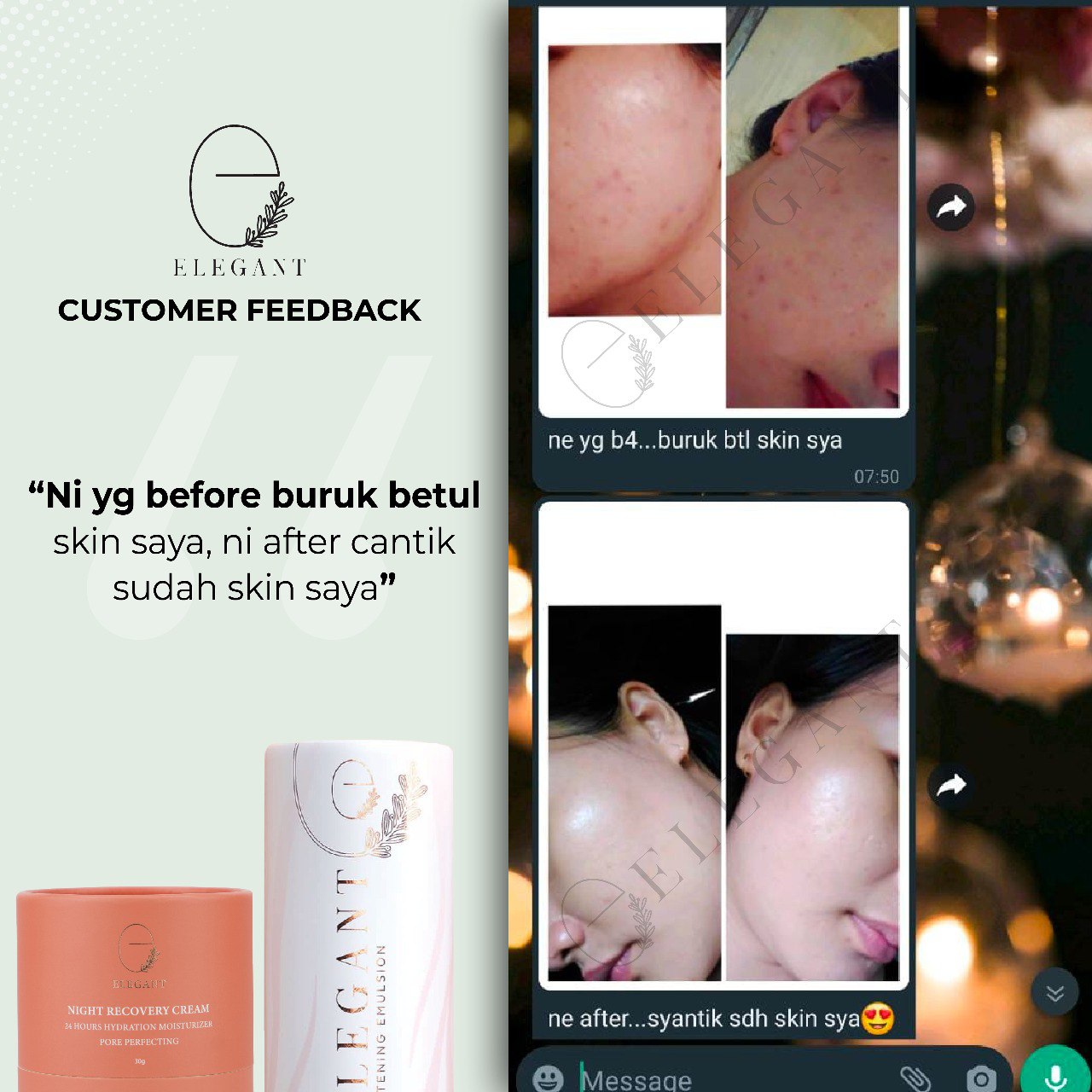 Testimoni Elegant Moisturizer Night Recovery Cream <<< Slide Klik link WHATSAPP di bawah untuk ORDER Elegant Moisturizer TOP Share this: Click to share on X (Opens in new window) X Click to share on Facebook (Opens in new window) Facebook Like Loading...